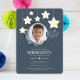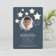 Celebre a primeira viagem da sua pequena estrela à volta da lua com este convite encantador! Apresentando um céu noturno sonhador, estrelas cintilantes, e uma lua brilhante, esta design celestial cria a atmosfera perfeita para uma mágica celebração do primeiro aniversário. Personalize-o com a fotografia do seu filho e os detalhes do evento para fazer uma manutenção que esteja verdadeiramente fora deste mundo. Perfeito para uma aventura de aniversário. Faça o seu grande dia brilhar com um convite que seja tão doce e cósmico quanto ele é!