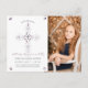 Estas primeiras economias que do comunhão santamente o cartão da data (cartão a ser enviado sem envelope) caracteriza um cálice e uma bolacha cinzentos (comunhão santamente) cercou por uma cruz ornamentado com acentos roxos e as palavras "primeiro comunhão" escrito em uma pia batismal elegante. O ideal para a ocasião religiosa especial, o texto e a foto da sua menina pode ser personalizado ao seu gosto.