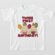 Os gêmeos fazem o primeiro aniversário de T-shirts, fatos-chave, autocolantes, cartões, posters, guardas e mais gêmeos nos chapéus e balões de festa e texto que diz "Gêmeos Primeiro Aniversário!".