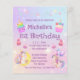 cupcakes e unicórnios coloridos primeiro aniversario na moda, caligrafia roxa, convite colorido giro que você pode mudar para cor e estilo.