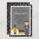 Comece a comemorar com este adorável convite para aqueles rapazes especiais Primeira Comunhão Sagrada. Ele tem uma cinza com borda impressão preta. No centro há um centro de cinzas com uma borda branca ao redor dele Há um garoto giro vestindo um terno com uma gravata azul. Ele tem cabelo castanho. Ao seu lado está uma bela igreja. Convidado perfeito para comemorar seu dia especial. Veja os muitos outros itens nesta linha, como etiquetas, postagens, notas de agradecimento e muito mais.