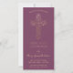 Este belo convite da Primeira Comunidade Santa apresenta uma ilustração cruzada floral de folha de ouro simulada com a palavra "Primeira Comunhão" em na moda correspondente. Há um fundo roxo (ameixa, fuschia) que pode ser alterado para qualquer cor de sua escolha. O texto (palavras e cor) pode ser personalizado para a ocasião religiosa especial do seu filho ou filha.
