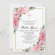 As rosas e peônias cor-de-rosa criam uma fronteira floral muito bonito neste convite ao batismo. Estão aninhados numa variedade de verde e folhas criando uma vibração botânica moderna. O nome da sua filha está escrito em uma fonte de script grande. A parte de trás do convite é uma cinzenta brilhante e rosa feminino. Me mande mensagem (sou Nelda) se precisar de alguma coordenação. Estou sempre disposto a ajudar. Obrigado por visitar minha loja Zazzle.