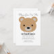 A design para este convite de aniversário do Primeiro Urso de Corte é composta por uma imagem do rosto de um ursinho marrom cercada por um texto personalizável. O texto para este design pode ser personalizado clicando no botão 'Personalizar" e, em seguida, fazer os ajustes desejados.