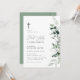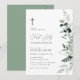 cartão de convite para a primeira comunhão moderno, de aquarela verde. O texto e as cores podem ser editados.