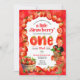 Este convite é para a festa de aniversário temática de morango de um ano!