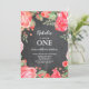 Primeiro Convite de Aniversário de 1 Ano Aquarela Botânica Floral Vermelha. Convite de Aniversário Floral Rosa Peônias para Menina. Aquarela Floral Flor. Elegantes Flores Rosa e Peônia. Aniversário de Crianças. Fundo de Quadro Negro. Preto e Branco. 13º 15º 16º 18º 20º 21º 30º 40º 50º 60º 70º 80º 90º 100º, Qualquer Idade. Para personalização adicional, clique no botão "Personalize" e use nossa ferramenta de design para modificar este modelo.
