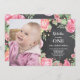Convite de 1º aniversário com foto personalizada. Floral Botânico Aquarela Rosa. Convite de Aniversário Floral Rosa Peônias para Menina. Flor Aquarela Floral. Elegantes Flores Rosa e Peônia. Aniversário Infantil. Fundo de Quadro Negro. Preto e Branco. 13º 15º 16º 18º 20º 21º 30º 40º 50º 60º 70º 80º 90º 100º, Qualquer Idade. Para personalização adicional, clique no botão "Personalize" e use nossa ferramenta de design para modificar este modelo.