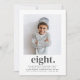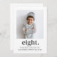 Um convite moderno para o 8.º Aniversário com a sua própria fotografia e a palavra '8.' por baixo. Você também pode editar todas as cores e estilos do texto - basta clicar no botão 'Personalizar' -> 'Editar usando a ferramenta design'.
