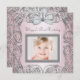 Cinza de prata elegante espirra cor-de-rosa e modelo de primeira convite de aniversário. Este belo convite de aniversário de fotos cor-de-rosa e cinza é facilmente personalizado para o seu evento, simplesmente adicionando detalhes de fotos e eventos, estilo de fonte, tamanho e cor de fonte e texto. Observe que todos os adesivos, cartões e designs de convite que você encontrará no Zazzle são gráficos impressos sem joias reais, arcos, levantados, gravados, ou peças ou peças adicionadas.
