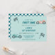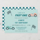 Comece o seu motor e comemore o seu primeiro aniversário com esta festa tematizada do carro de corrida. Este convite apresenta carros de corrida de safra bonitos. Condecorações de festas na nossa loja.