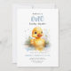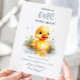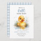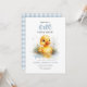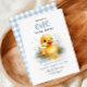 "Um pato sortudo", primeiro convite de aniversário com um patinho fofo e um padrão de gingham de cottagecore.