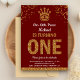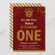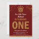 Convite de festas Elegante com uma bela coroa dourada e uma tipografia vibrante sobre um fundo vermelho. Basta adicionar os detalhes do seu evento neste modelo fácil de usar para torná-lo um convite de tipo único. Sacudir a placa para revelar um padrão falso de faixas de brilho dourado na parte traseira da placa.