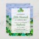 Este convite de aniversário único do orçamento é decorado com uma arte têxtil, a cena rural irlandesa, com shamrocks e tipografia de na moda. Perfeito para uma Rua. Dia de Patrick, uma Marcha, ou um primeiro aniversario de temas irlandeses. Facilmente personalizável. Têxtil Original © Michele Davies.
