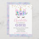 Um convite de unicórnio para o seu amante de unicórnio. Um rosto unicórnio é adorado com um confete de brilho dourado com pistas de rosa. roxo e lacre. Uma fonte moderna de script é usada para o nome. Perfeito para o primeiro aniversário, mas a idade pode ser facilmente alterada para qualquer outro número. Itens correspondentes podem ser encontrados em nosso compro.