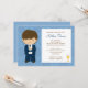 Convide a família e os amigos ao comunhão da sua criança com este primeiro convite do comunhão. Este convite azul pode ser personalizado com seus detalhes da celebração. Alguns elementos ZenWareDesign