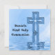 O design bonito e original com as cores azuis, mostradas diz: De "o primeiro comunhão santamente Daniel" na parte dianteira com um design original da arte de uma cruz especial com estrela estourou tudo refletido nas ondinhas calmas da água abaixo. Mude facilmente o nome e adicione seu texto feito sob encomenda na parte traseira. Recorde que este dia santamente especial com estes o costume convida e anúncios para seus família e amigos. Veja primeiros etiquetas e botões similares do comunhão, pinos, ímãs, t-shirt, selos postais, e pastas na loja de MVDesigns. Igualmente excelente para confirmações, baptismos, e casamentos!