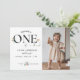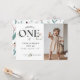 Primeiro convite de aniversário com flores silvestres e uma foto do convidado de honra. Convite branco e claro horizontal com flores silvestres a rosa, coral, amarelo e azul claro. O seu pequeno é "Um tipo!"