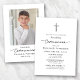 Cartões de fotos da Primeira Comunhão com uma Cruz prateada projetada de forma personalizada. A elegante tipografia do cartão apresenta uma fusão de um único roteiro de tinta manuscrito e texto moderno minimalista, tudo em tons de prata, platina e tinta preta. Sua foto destaca a parte de trás do cartão com texto, nome e data da comunicação. Perfeito para enquadrar. A placa em si é branca ou pode ser alterada simplesmente editando o design e escolhendo a cor desejada. Disponível em impressão de alta qualidade ou para download, oferecendo formato de download digital instantâneo para mensagens de texto, e-mail ou postas de mídia social.