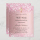 Um plano de fundo de gradiente cor-de-rosa. Decorado com brilho sujo rosa, confete e uma cruz. Personalize e adicione um nome e detalhes. O nome é escrito com um script de estilo manuscrito