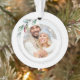 Um presente perfeito para recém-casados ou casamentos de aniversário, este elegante Enfeites de natal acrílico apresenta fotos frontais cercadas por uma série de luzes de feriado. Nosso primeiro Natal como Sr. & Sra. com as curvas de data no topo da sua foto. As palavras Merrily Ever After são colocadas em tipografia branca, escrita à mão sobre um sólido fundo azul-bebê no fundo. Personalize este ornamento redondo com os seus nomes para criar um guardião único para um presente de Natal. Para ver mais designs visite www.zazzle.com/vginvites