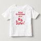 O design da Camiseta de Primeiro Natal do Irmão apresenta a frase "Primeiro Natal como uma "Irmã Mais Velha!" em letras vermelhas brilhantes. Um chapéu de Papai Noel é exibido equilibrado na borda da letra "S" de Sister (Irmã) e uma coroa de Natal pende de forma divertida no final da palavra Natal. Pequenos pontinhos verdes e vermelhos são exibidos por toda parte. Projetado para acompanhar a coleção "Primeiro Natal".
