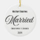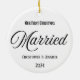 Celebre seu marco empolgante com este lindo ornamento do "Primeiro Natal Casado" para 2024! Personalizado com ambos os nomes e o ano, este ornamento captura a alegria e o amor da sua primeira temporada de festas como um casal casado. O design de escrita minimalista adiciona um toque de elegância, fazer-o a adição perfeita à sua árvore de Natal ou um presente pensativo para novos amigos. Feito de cerâmica de alta qualidade com acabamento brilhante, esse ornamento será um guardião precioso nos próximos anos. Comemore seu novo casamento e crie memórias de feriado com este único ornamento personalizado! Celebre a sua história de amor e torne esta temporada de férias extra especial com um ornamento personalizado que marca seu novo começo em estilo!