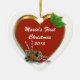 O primeiro coração de decoração de fotos de Natal do bebê com 3 dimensões douradas e coração para um presente ou lembrança de Natal especial. Carregue a sua imagem no verso para uma verdadeira memória simpática para a árvore todos os anos. (O efeito de desaparecimento já existe)