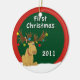 Primeiro ornamento do Natal 2011 para um rapaz pequeno. Este ornamento tem um alce lunático, bonito decorado no vestuário do feriado.