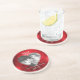 A porta copos romântica personalizada da foto do primeiro Natal com coração deu forma ao quadro da foto no fundo vermelho festivo dos flocos de neve do feriado. Adicione seus foto, monogramas e título para criar uma primeira lembrança personalizada excelente do Natal para seu casal! Você pode remover todo o texto para deixar este vazio da porta copos.