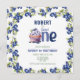 Primeiro convite de aniversário de Berry com tema de mirtilo. Doce Um cupcake de fosco de mirtilo com borda de mirtilo. Berry, um ano de idade, diversão para o primeiro aniversario da sua criança!
