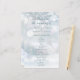 Apresentando uma elegante tipografia azul empoeirada e flocos de neve delicados caindo sobre seus detalhes personalizados de casamento em um fundo de geada de inverno. Projetado por Thisnotme©