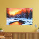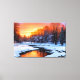 "First Thaw", por Barry Dyar ©, Vibrant Landscapes Digital Oil Painting, Archive Giclee Impressão on Canvas, Red sunset refletindo sobre a primeira palha do lago após um longo inverno frio. Cores vibrantes quentes, em contraste com a neve cintilante.