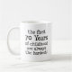 Os primeiros 70 anos de infância são sempre a caneca engraçada a mais dura. Uma grande caneca para umas pessoas de 70 anos que sejam ainda jovens no coração. Um engraçado, presente de aniversário do marco miliário do 70. Excelente para umas pessoas de setenta anos ativas novas.