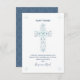 Estes primeiros cartões de agradecimentos modernos do comunhão santamente caracterizam uma cruz floral azul e verde tirada elegante. Ideal para agradecer a convidados para juntar-se à celebração religiosa de um menino, podem ser personalizados com nome e uma nota pessoal da sua criança. A cor do fundo pode igualmente ser mudada ao seu gosto.