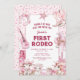 Capture o espírito vivo do Oeste Selvagem com nossos primeiros convites de aniversário! Personalize uma encantadora cena do deserto adornada com confete rosa, cavalos, vacas e itens icônicos de cowgirl. É o seu primeiro rodeio, e confie em nós, estes convites o tornarão inesquecível.