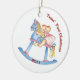 Estes primeiros enfeites de natal dos gêmeos adoráveis caracterizam os gêmeos bonitos do menino/menina que montam em um cavalo de balanço.