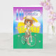 Primo 10º Cartão de Aniversário com garotinha na bicicleta