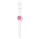 Um bonito relógio branco esportivo, com um padrão de primatas amarelos e bolinhas verdes em fundo rosa profundo: parte da coleção 'Primroses' Posh & Painterly.