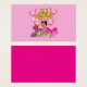 Ilustração de uma adorável menina vestida de rosa, com cabelo em pães com arcos rosa e princesa tiara. Cercado por brinquedos e com balões cor-de-rosa e dourados acima com estrelas e faixa lua. Bonito presente para esperar pais, chás de fraldas, revelação de gênero ou presente de aniversário de bebês.