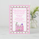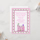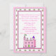 A convite de aniversário da Princesa da bonito. Gráficos doces de um castelo de desenho cor-de-rosa decoram o fundo, e uma adorável borda floral rosa e verde ao redor das bordas do convite. O texto em cor-de-rosa está pronto para personalizar o dia especial da sua princesa.