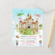 Um Convite de aniversário de Conto de Fada e Princesa Crianças. A cena da aquarela mostra dragões voando ao redor do grande castelo, enquanto cavaleiros e princesas bonito posam na grama. Personalize adicionando seu evento de cheio e os detalhes de contato.