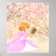 Princesa rosa e poster de esquilo. Uma bela princesa doce de vestido cor-de-rosa com flor de amêndoa para fundo.A cor é prefeita para o quarto das crianças. Ela é brilhante e sorri e vai tornar suas paredes mais mágicas. Para amantes de princesas e todas cor-de-rosa e flores.