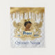 Adorável Príncipe Africano usando uma coroa de ouro no topo de um brasão de leão régio dourado e uma faixa com um fundo brilhante de gotejamento dourado e diamantes brancos. Texto “Príncipe” em Azul Real no centro da faixa e “est. 2022” à esquerda e à direita. Personalize com o seu próprio texto na parte inferior. ©2022 Miss Sassy Party Designs