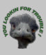 A imagem engraçada da cara de uma cabeça da avestruz com 'É VOCÊ que PROCURA O PROBLEMA "circundado em torno da cabeça