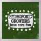 "Os Hidroponentes Se Divertem Mais" é um design de texto fofo em verde com texto preto, junto com um sotaque branco e pontos brancos texturizados ao seu redor.