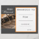 Um prêmio de certificado de música moderno na moda com uma imagem clarineta perfeita para encorajar um jovem músico ou um clarinete. Você pode escrever em seus próprios detalhes. Um recurso de excelente para um clarinete ou professor de música.