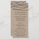 Simples, mas elegante, as luzes de cordas na coleção de casamento rustic Kraft é um design impressionante com luzes de cordas brancas adoráveis em um fundo de efeito Kraft, o que é perfeito para qualquer celebração de casamento rústico. Esses programas podem ser personalizados para sua ocasião especial e tornariam a ordem perfeita de serviço para seu casamento, chá de panela, festa de noivado, festa de aniversário e muitas outras ocasiões especiais. Adicione seu texto personalizado a este design usando as caixas "Editar este modelo design" no lado direito do item, ou clique no botão azul "Personalizar" para organizar o texto, alterar as fontes e cores e também adicionar informações ou imagens adicionais a este design. EXIBIR ITENS CORRESPONDENTES PARA ESTA COLEÇÃO