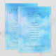 Este programa de casamento apresenta um design sereno em estilo aquarela com tons azuis suaves que criam uma atmosfera aérea e sonhadora. O layout é minimalista, mas sofisticado, com letra elegante e fontes sans-serif limpas que guiam os detalhes da cerimônia de forma clara e organizada. Perfeito para um evento formal, este design equilibra o estilo artístico com informações funcionais, transmitindo um clima calmo e convidativo, ideal para celebrar o amor e a união.