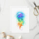 Água-viva grande, iridescente, desenhada artisticamente, brilhante, com longos tentáculos em branco, pintada sobre fundo de aquarela multicolorido. Água-viva arco-íris.